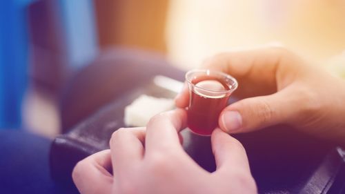Here are a few suggestions of things you might do to help you as you remember, eat bread and drink wine/juice.